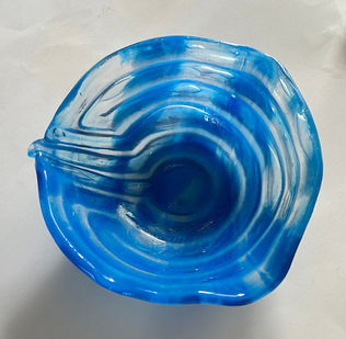 She enjoys trying new techniques and never makes two identical pieces. She doesn’t make glass to sell it, she sells glass so she can make more. Her real passion is sharing the joy of glass creations and some day she would like to teach classes.