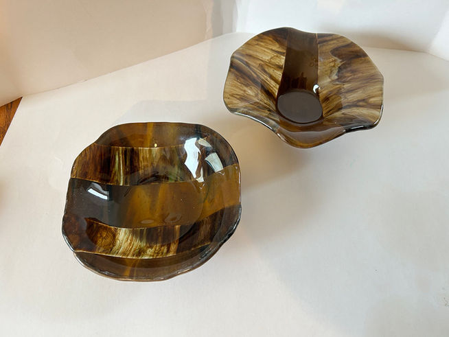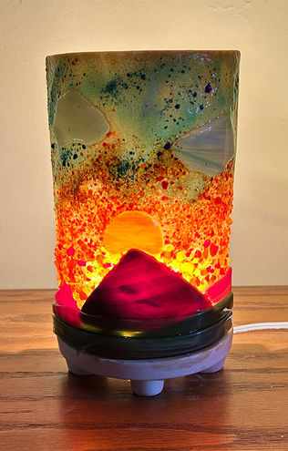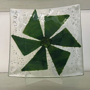 Kathy Glista is a fused glass artist. She developed a passion for glass when she took a class in glass blowing at Snow Farm in Williamsburg, MA. Although she thoroughly enjoyed the class, she knew she did not have the strength or resources to continue, so looked for other ways to work with glass. She discovered glass fusing and began making jewelry in a small microwave kiln. She taught herself and after a couple of years took a class in glass fusing. Not long after she met a woman who was selling her kiln. It all fell into place, and she was able to get a used kiln and set up a workshop in her home.
