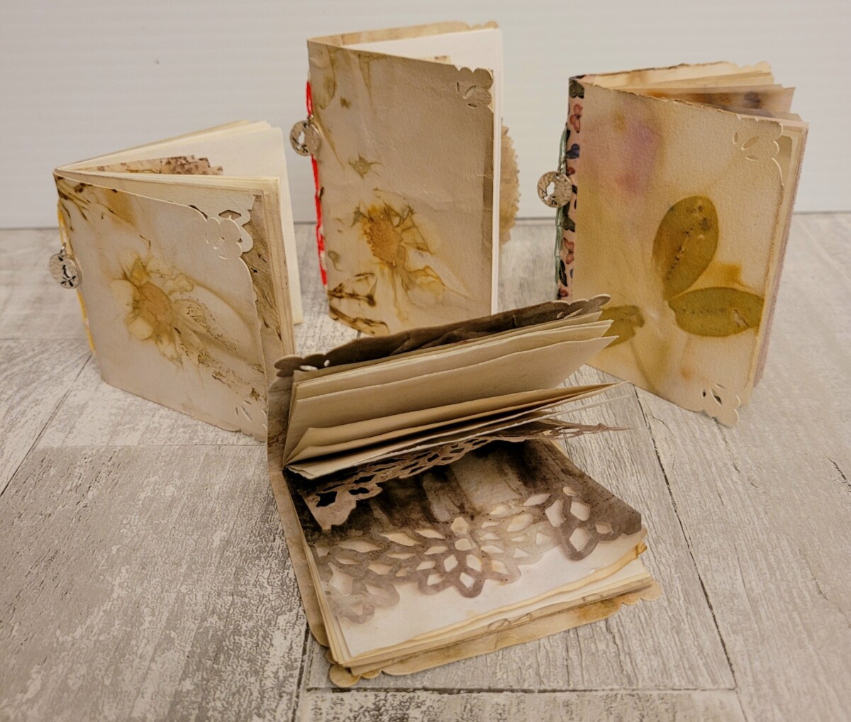 Donna utilizes eco-printing, a process of making direct contact botanical prints from natural pigments found in plants. Those botanical print originals are then enhanced with ink illustrations, watercolor washes and mixed media techniques – and used in her journals and books, using traditional binding techniques.
