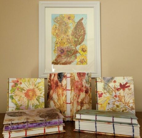 “I began to experiment with that. And that was so enjoyable that I wanted to know what more I could do with the prints that I pulled from simple plants in nature. And I came to bookmaking, and bookbinding gives me a place to use my hands.